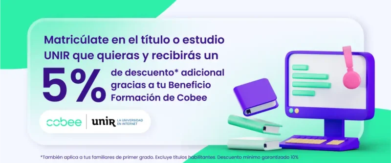 Matricúlate en el título o estudio que prefieras de UNIR y recibirás un 5% de descuento adicional gracias a Cobee