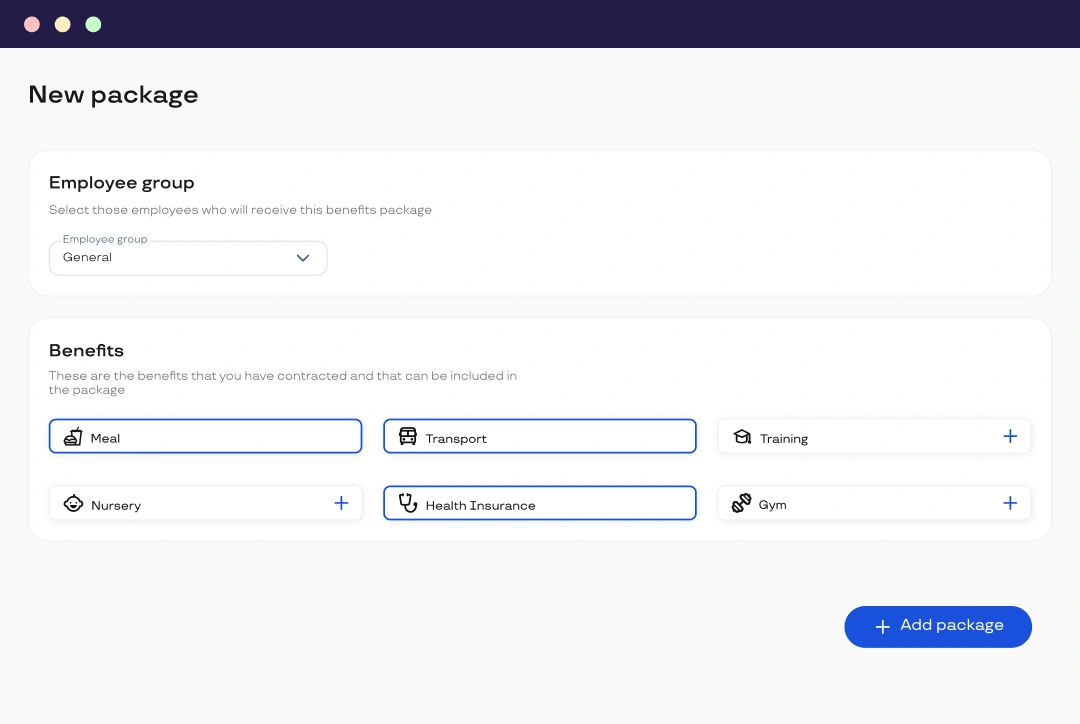 You choose: delivery method, employee groups and benefits. Now you can even customise the name of your wallets to improve use of the plans.